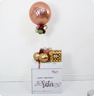 A beautifully designed personalised balloon that is delivered with our one-of-a-kind, handmade unique tail that is designed just for you and your loved one. Inspired by your theme and message. You can choose your very own filling, whether it’s a little sparkle to your own design that will make this gift extra special and express your love. This Magic box can be delivered on your chosen date.